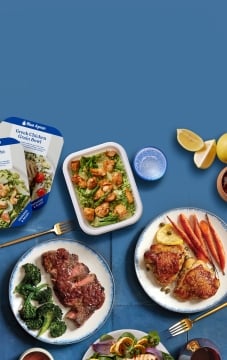 Blue Apron is a subscription service that delivers delicious meals with quality ingredients to your door, helping cooks of all levels prepare incredible meals at home. You get to choose from easy-to-follow recipes with pre-portioned ingredients, or Prepared & Ready meals you can heat and enjoy in minutes. We take care of the menu planning and shopping, so all you have to do is cook (or heat!) and enjoy.
